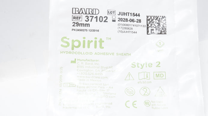 - Bard 37102 Spirit Hydrocolloid Adhesive Sheath, Style 2 Medium, 29mm