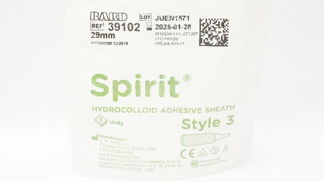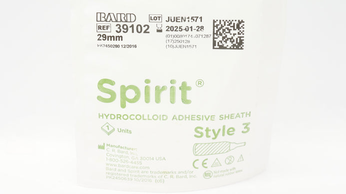 - Bard 39102 Spirit Hydrocolloid Adhesive Sheath Style 3 29mm