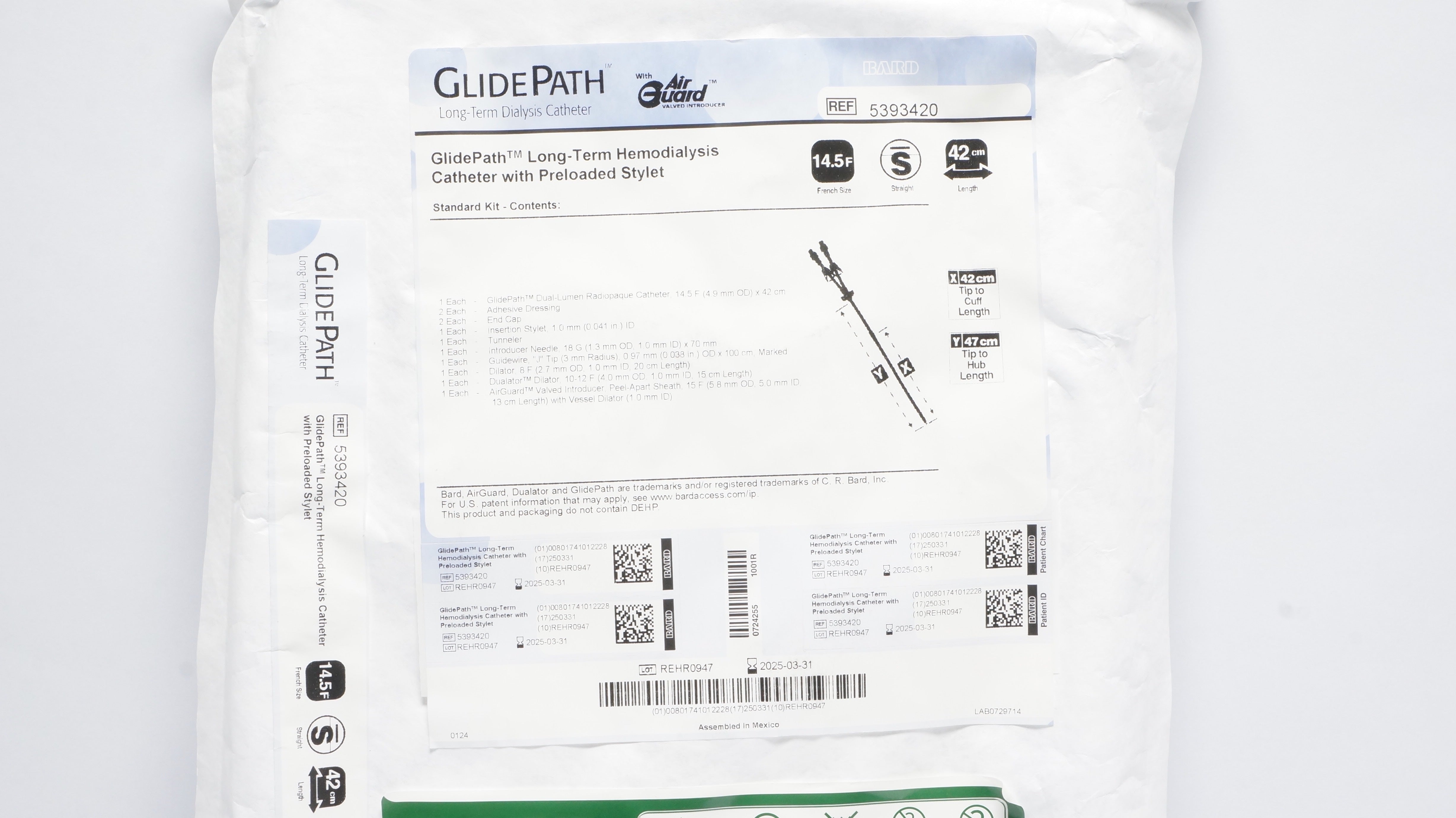 - Bard 5393420 GlidePath Long-Term Hemodialysis Cath. w/Stylet 14.5F x 42cm (x)