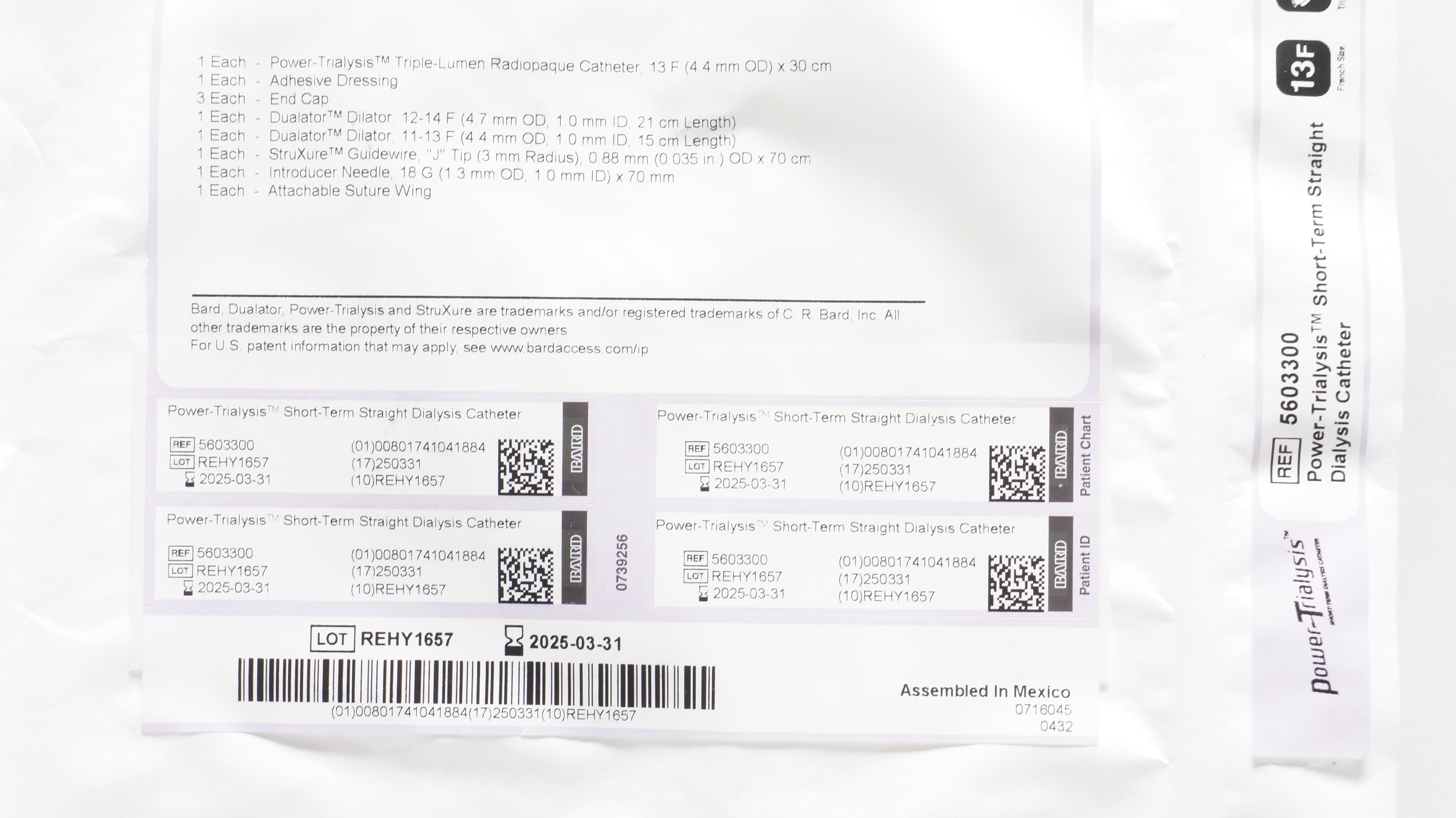 - Bard 5603300 Power-Trialysis Short Term Straight Dialysis Cath. 13F x 30cm (x)