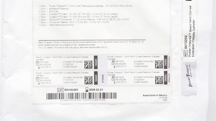 - Bard 5613200 Power-Trialysis Short-Term Curved Extension Dialysis Cath. (x)