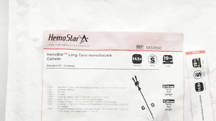 - Bard 5833690 Long-Term Hemodialysis Cath. 14.5F