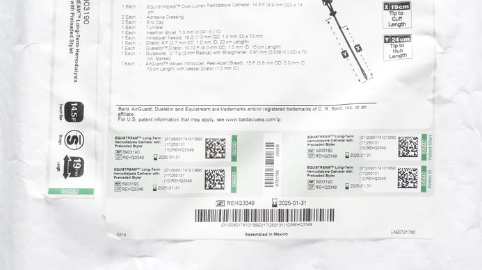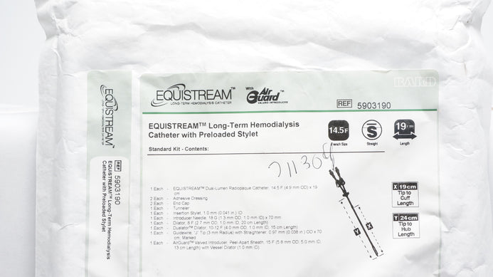 - Bard 5903190 Equistream Long-Term Hemodialysis Cath. W/Preloaded Stylet (x)