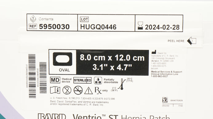 - Bard 5950030 Davol Ventrio ST Hernia Patch Oval 3.1inch x 4.7inch (x)