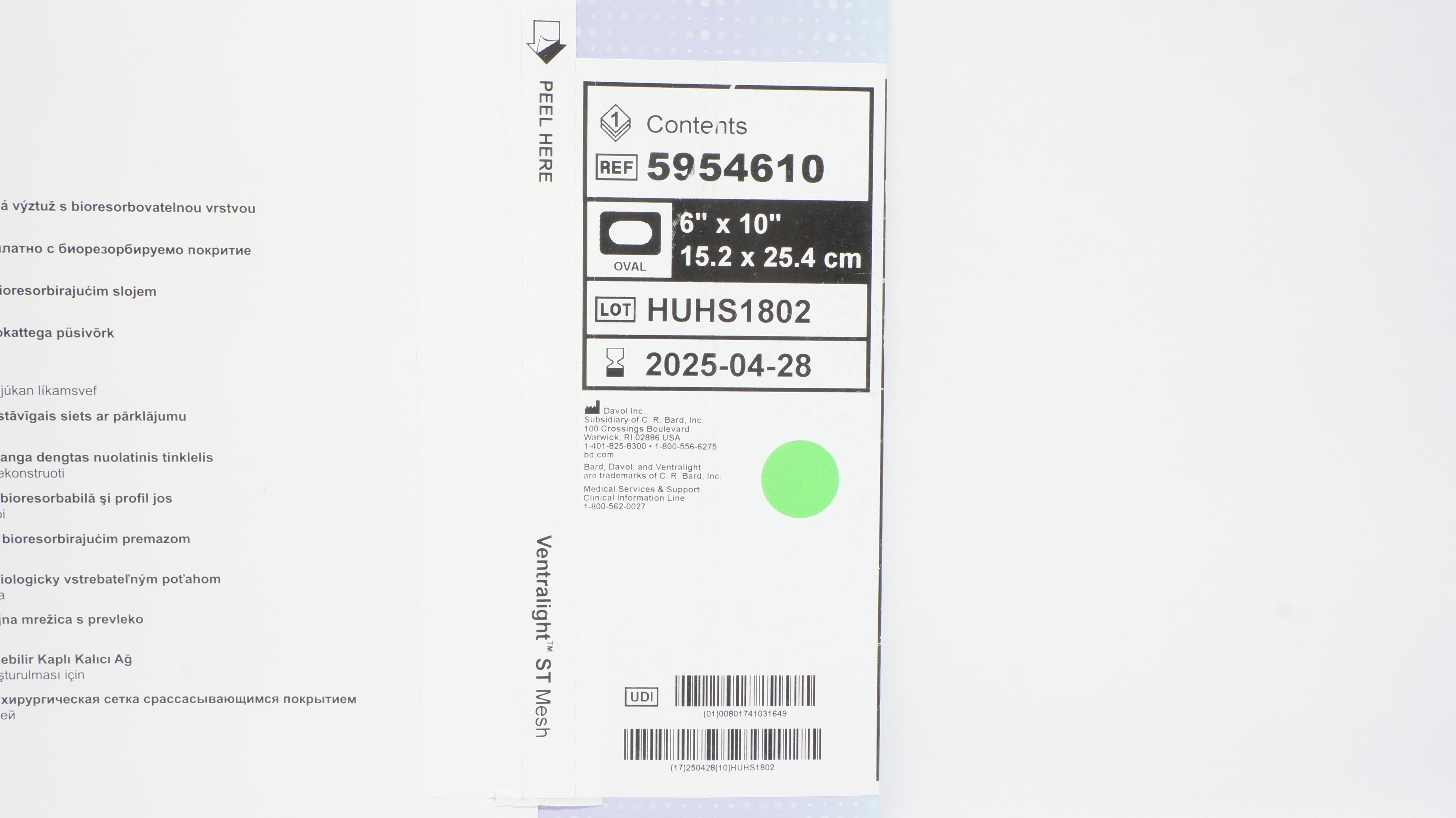 - Bard 5954610 Ventralight ST Low Profile Bioresorbable Coated Mesh 6 x 10inch (x)