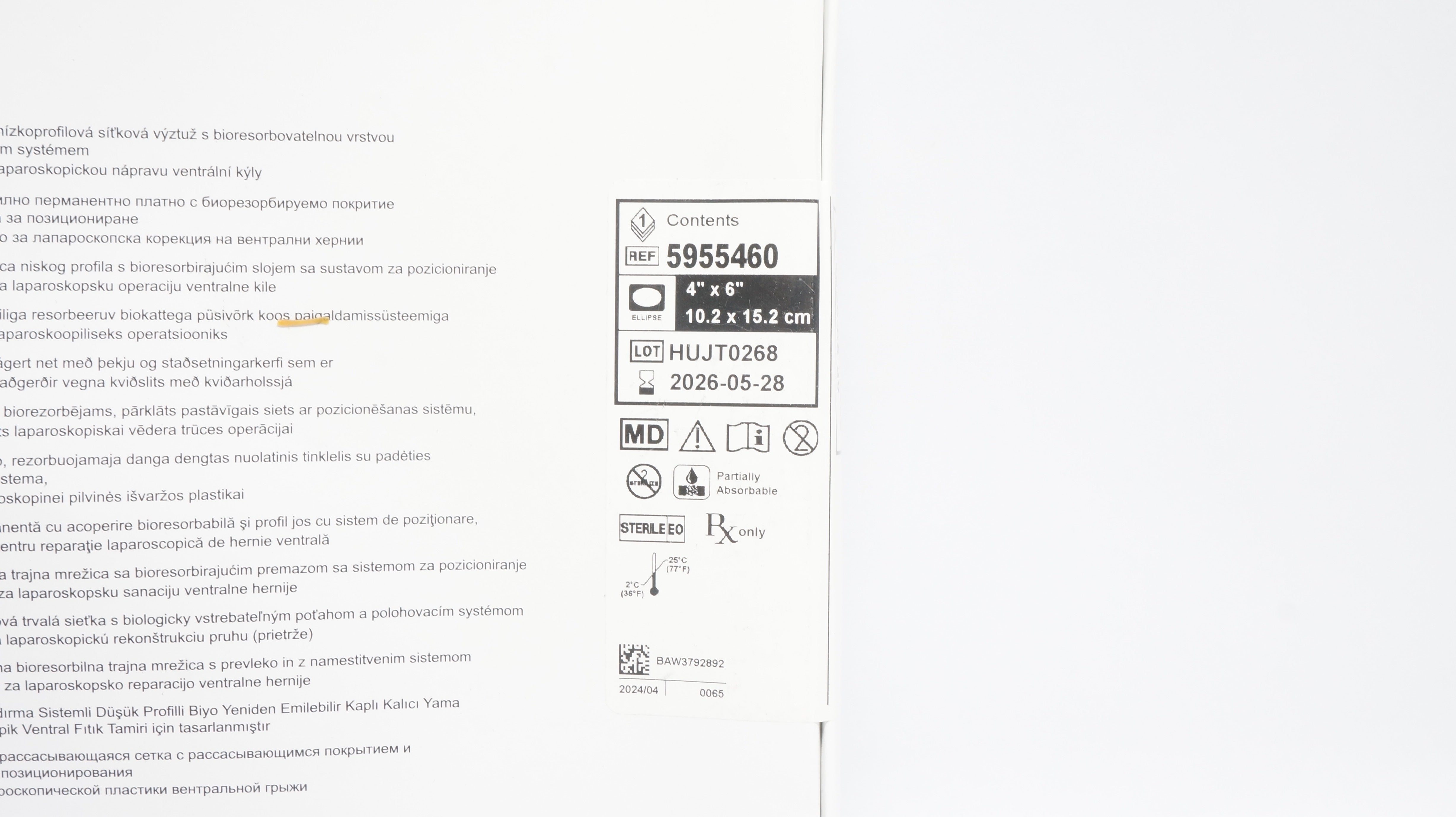 - Bard 5955460 Ventralight ST Mesh w/Escho PS Positioning System 4 x 6 inch