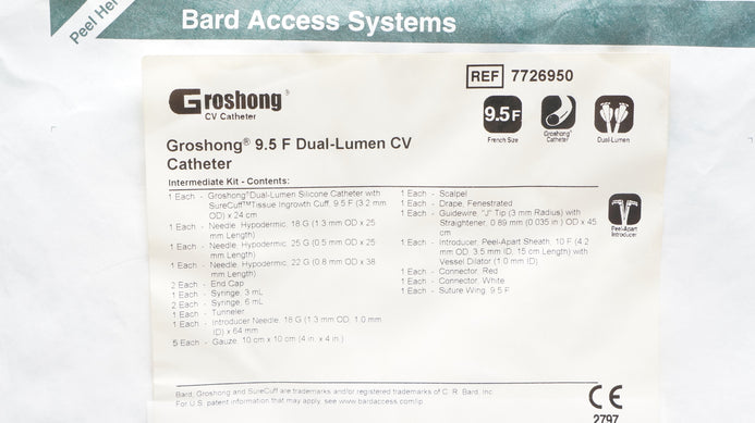 - Bard 7726950 Groshong Dual-Lumen CV Cath. 9.5F (x)