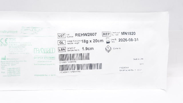 - Bard MN1820 Magnum Disposable Core Tissue Biopsy Ndle 18G x 20cm x 1.9cm