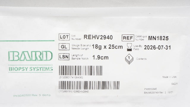 - Bard MN1825 Magnum Disposable Core Tissue Biopsy Needle 18g x 25cm