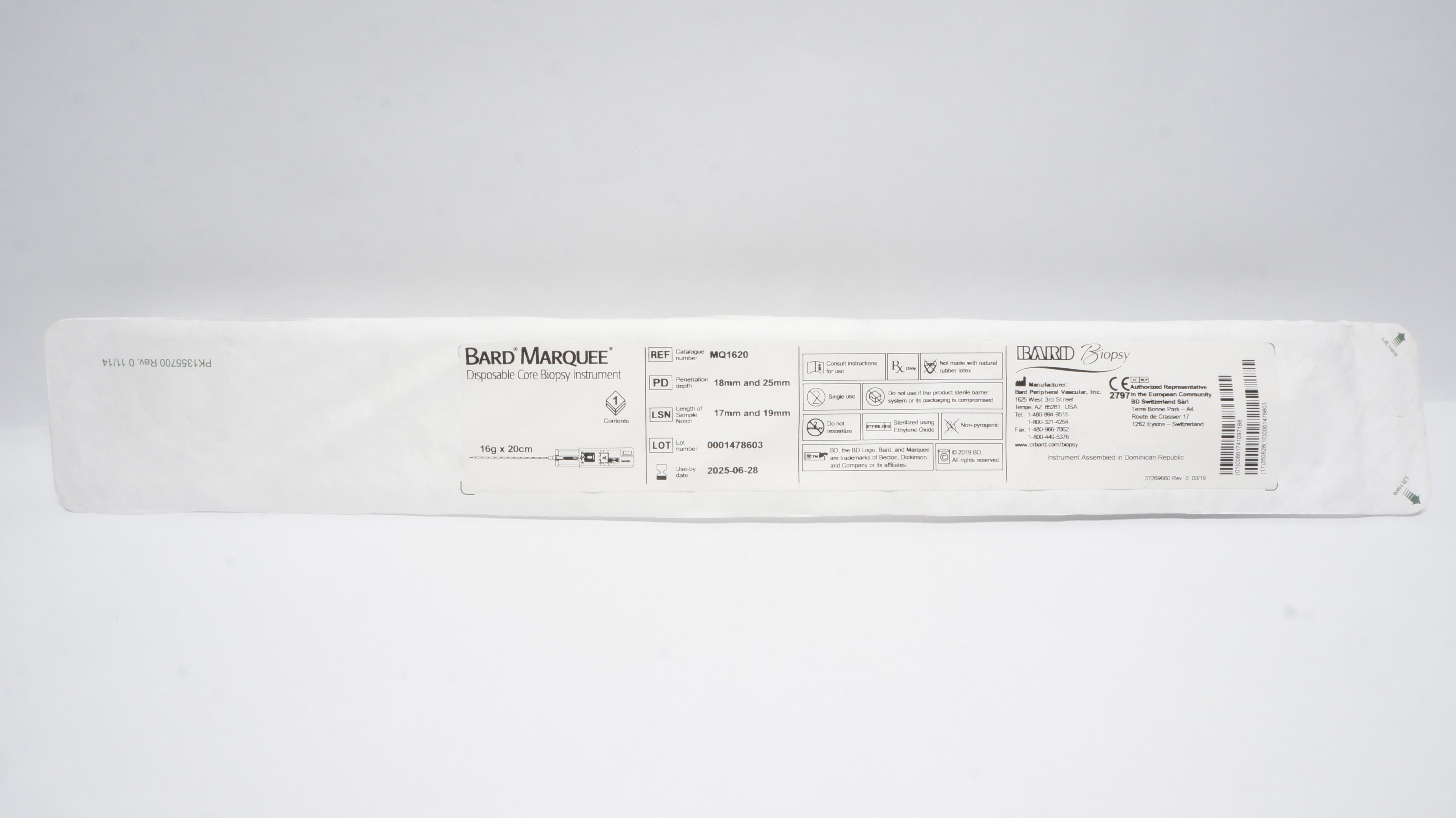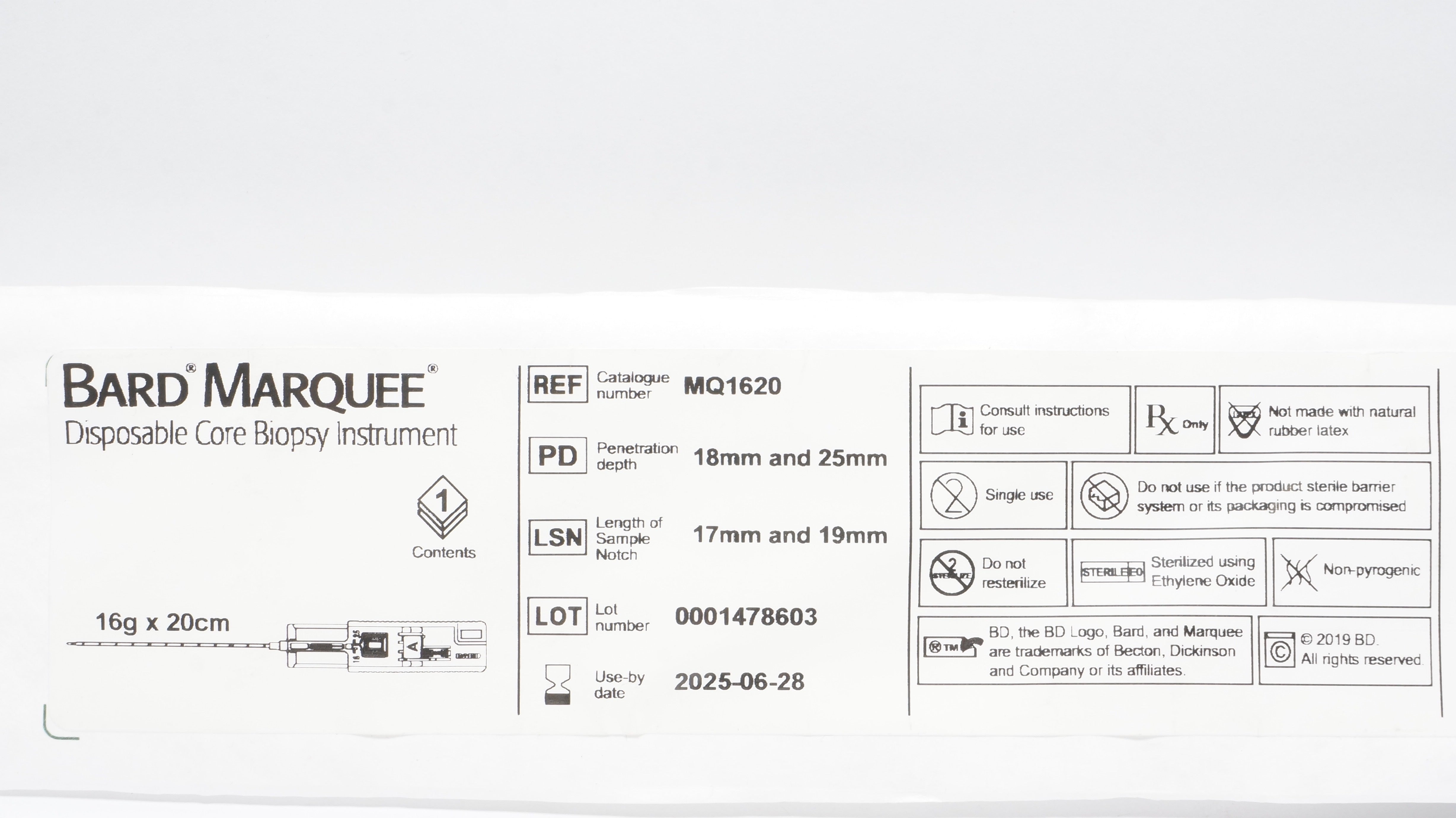 - Bard MQ1620 Marquee Disposable Core Biopsy Instrument 16g x 20cm (x)