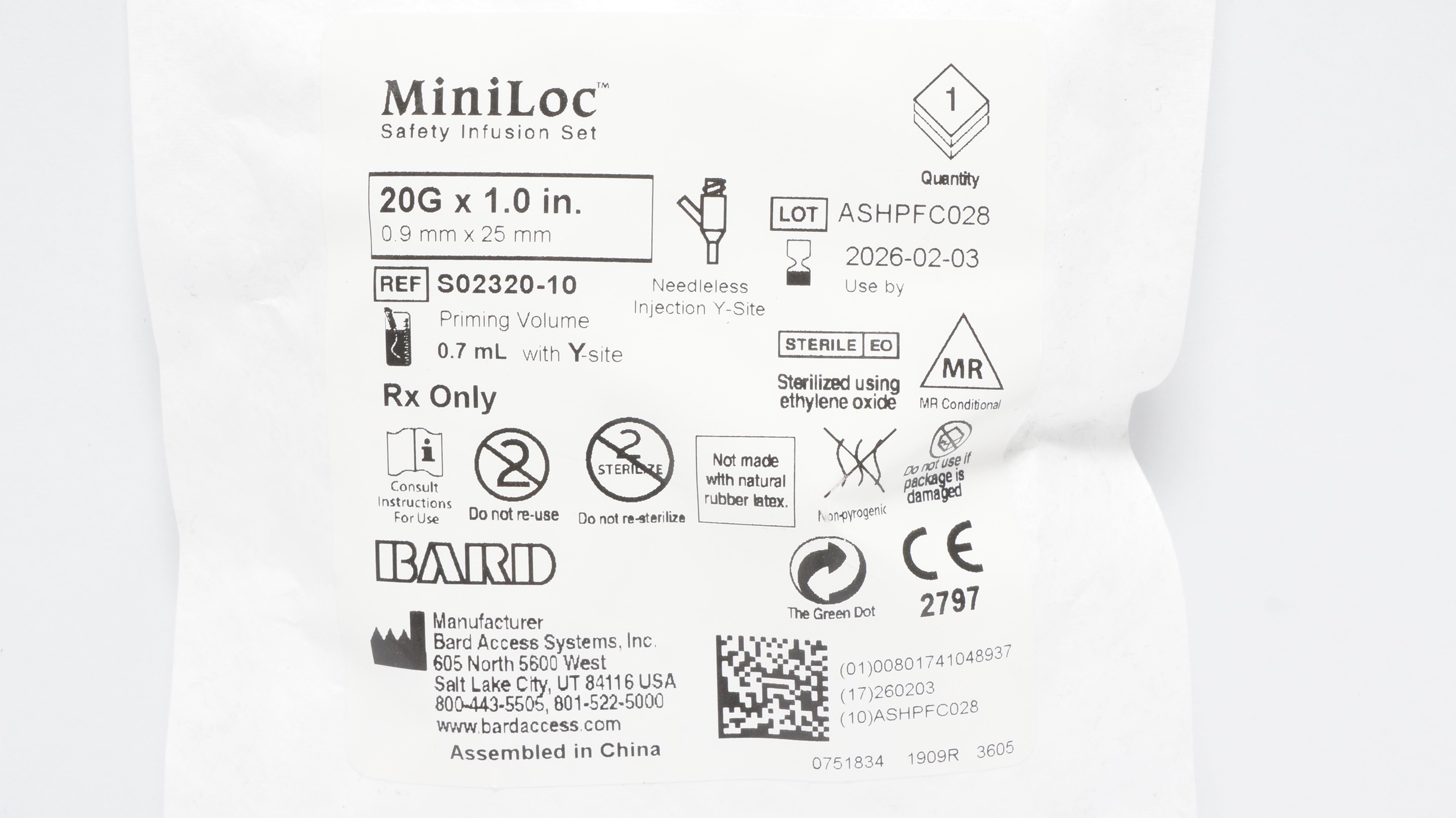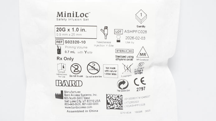 - Bard S02320-10 MiniLoc Safety Infusion Set 20G x 1.0in