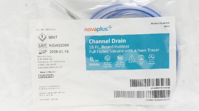 - Bard V072229 NovaPlus Silicone Channel Drain 15Fr Full Fluted w/4.7mm Trocar