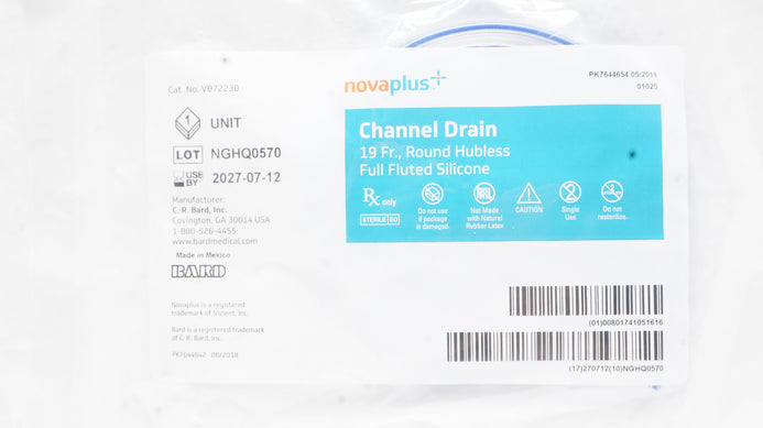 - Bard V072230 Novaplus Channel Drain 19Fr. Round Hubless Full Fluted Silicone