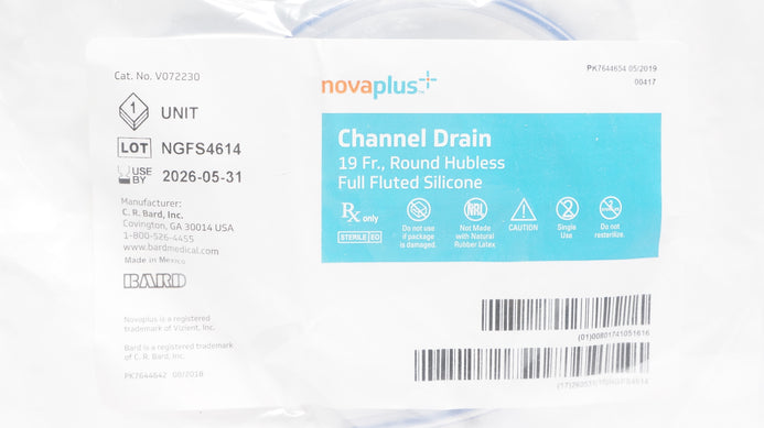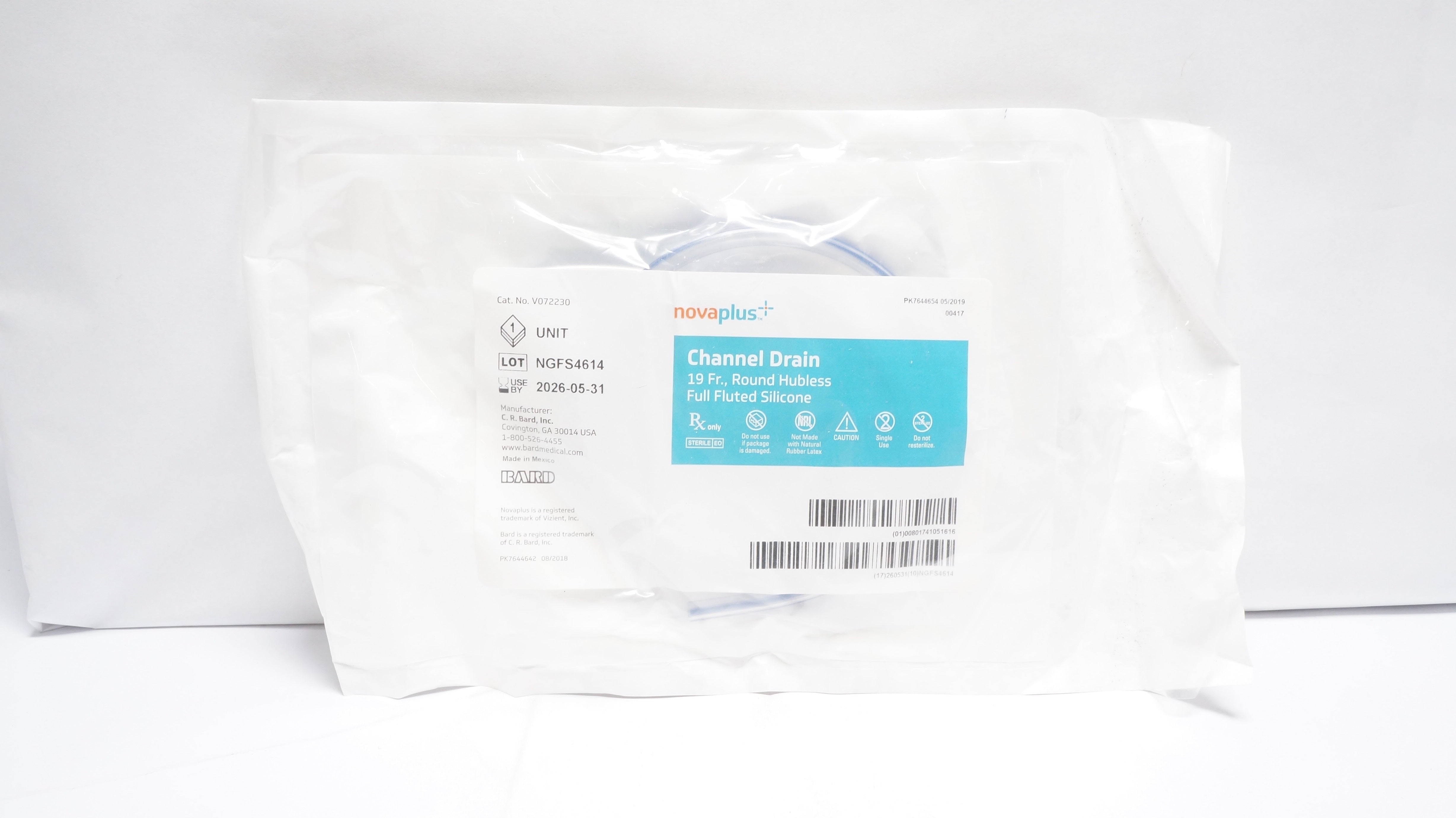 - Bard V072230 Novaplus Channel Drain 19Fr. Round Hubless Full Fluted Silicone