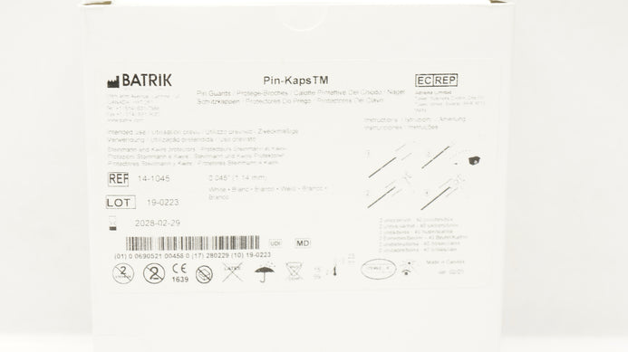 - Batrik 14-1045 Pin-Kaps Protege-Broches White 0.045inch - Box of 40