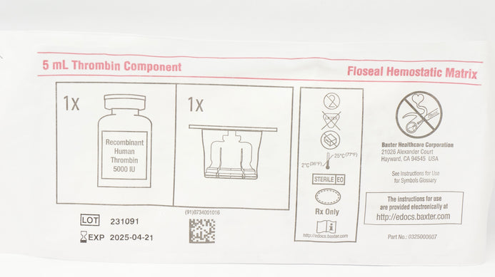 - Baxter 0308212 Thrombin Component Floseal Hemostatic Matrix 5mL