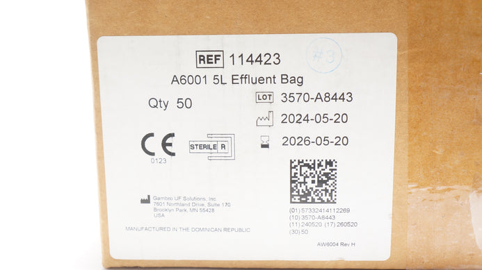 - Baxter 114423 A6001-5L Effluent Bag - Case of 50