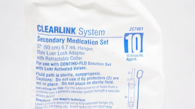 - Baxter 2C7461 Clearlink Secondary Medication Set 37inch x 6.7mLHanger 10drops/ml