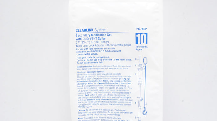 - Baxter 2C7462 Clearlink System Secondary Medication Set 37inch x 6.7mL Hanger(x)