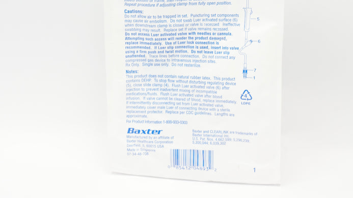 - Baxter 2C8401s Clearlink System Solution Set 76 inch, 10 drops/mL Approx.