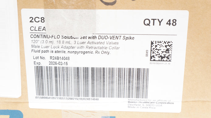 - Baxter 2C8541 S Clearlink Continu-Flo Solution Set 120in, 18.8ml, 3 Luer - Box of 48