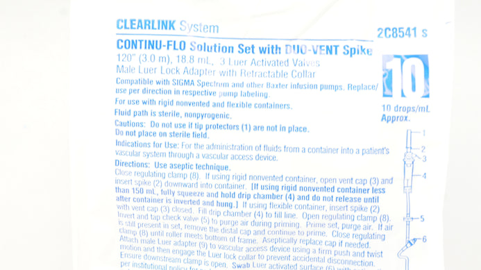- Baxter 2C8541 s Clearlink Continu-Flo Solution Set 120inch, 10 Drops/ml (Approx)