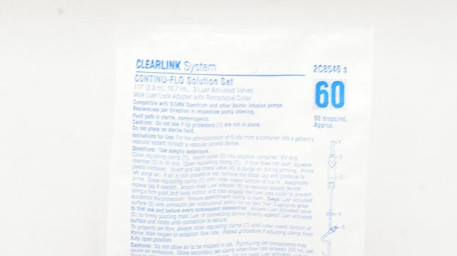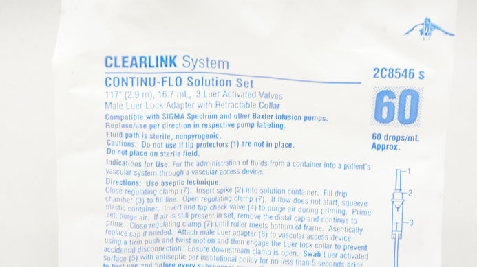 - Baxter 2C8546S Clearlink Continu-Flo Solution Set 117inch 16.7ml 60 Drops/mL