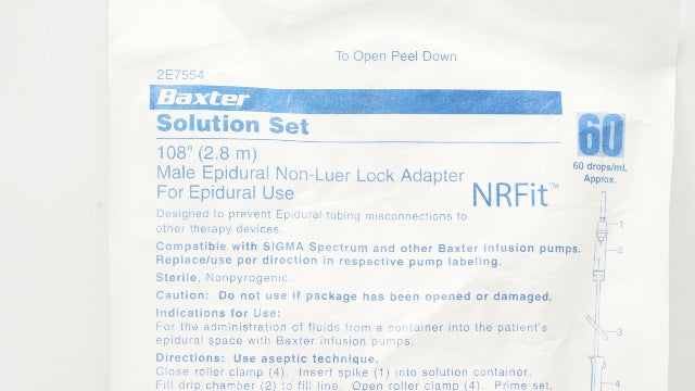 - Baxter 2E7554 Solution Set 60Drops/mL, 108inch Male Epidural Lock Adapter(x)