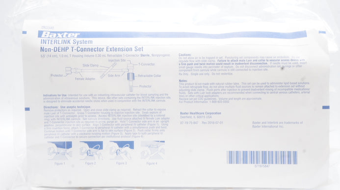 - Baxter 2N3340 Interlink Syst Non-Dehp T-Connector Extension Set 5.5in-Pack of 50