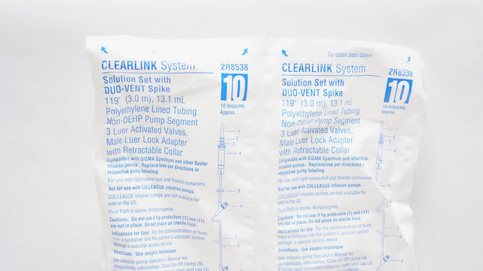 - Baxter 2R8538 Clearlink Solution Set w/Spike , 10Drops/ml Approx.-Lot of 2 (x)