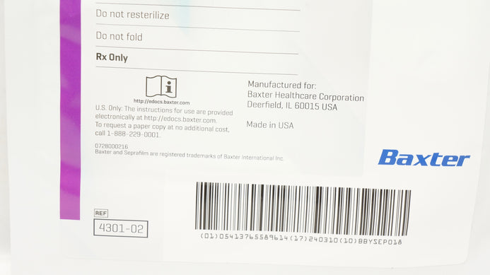 - Baxter 4301-02 Seprafilmm Adhesion Barrier 5inch x 6inch Membrane (x)