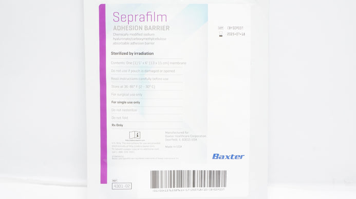 - Baxter 4301-02 Seprafilmm Adhesion Barrier 5inch x 6inch Membrane (x)