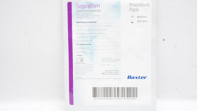 - Baxter 5086-02 Seprafilm Adhesion Barrier Procedure Pack 3inch x 5inch Membranes