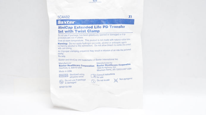 - Baxter 5C4482 MiniCap Extended Life PD Transfer Set with Twist Clamp