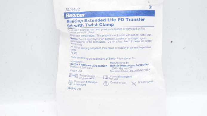 - Baxter 5C4482 MiniCap Extended Life PD Transfer Set with Twist Clamp