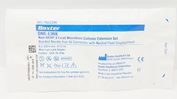 - Baxter 7N8330K One-Link Non-DEHP 3 Lead Microbore Cath. Extension Set 8.0inch