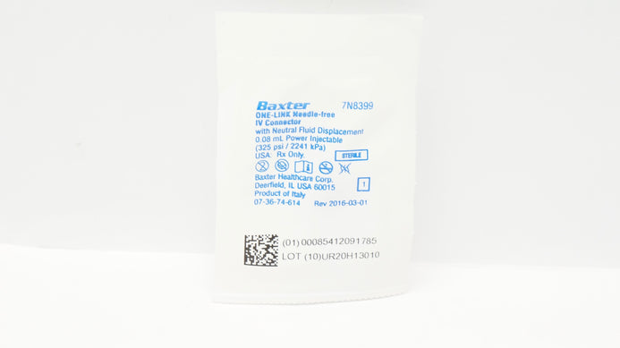- Baxter 7N8399 One-Link Ndle-Free IV Connector w/Fluid Displacement 0.08mL