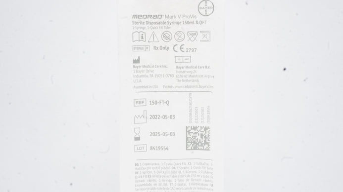 - Bayer 150-FT-Q MEDRAD Mark V ProVis Sterile Disposable Syringe 150ml & QFT