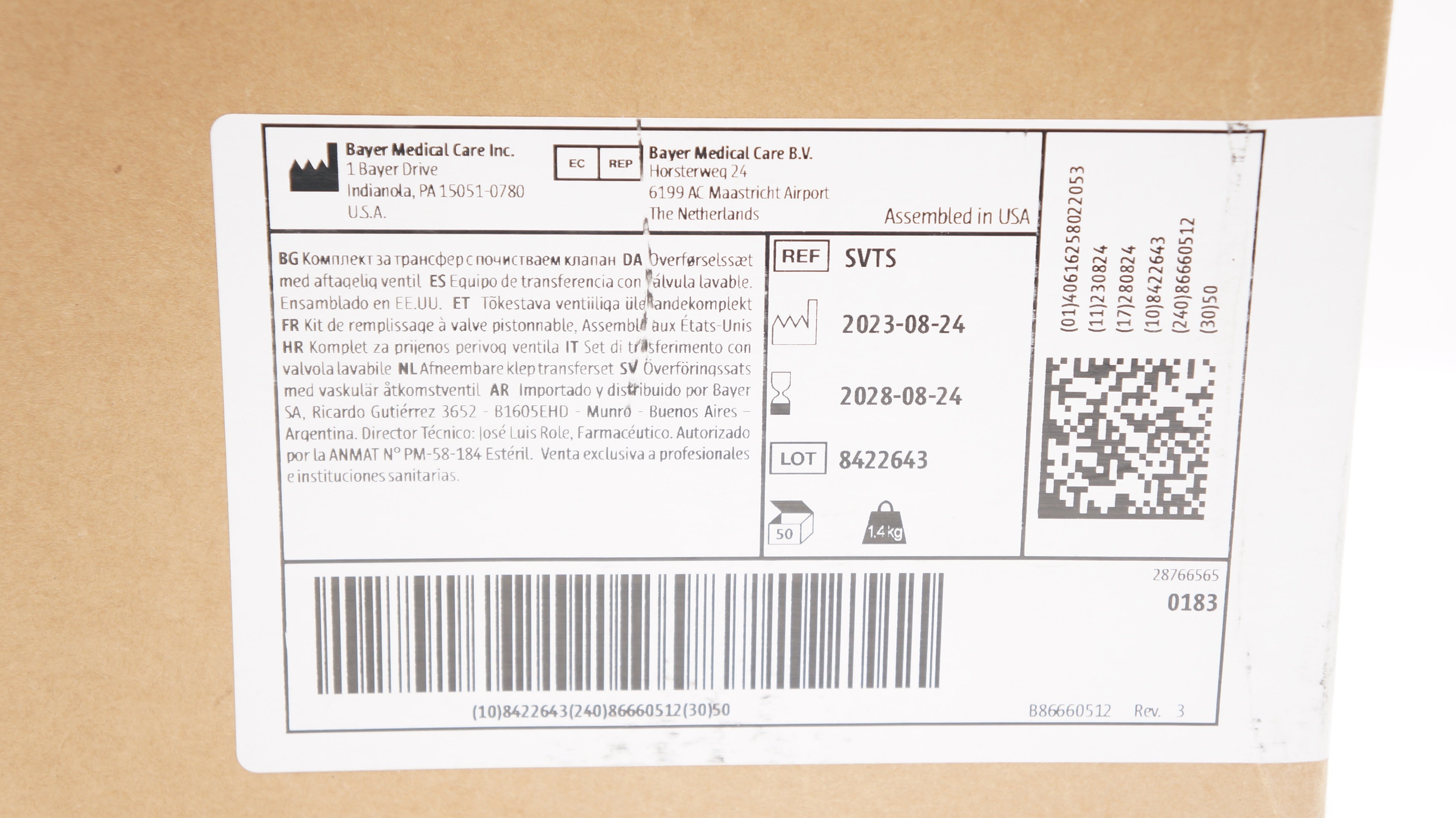- Bayer Medical SVTS Swabbable Valve Transfer Set - Case of 50