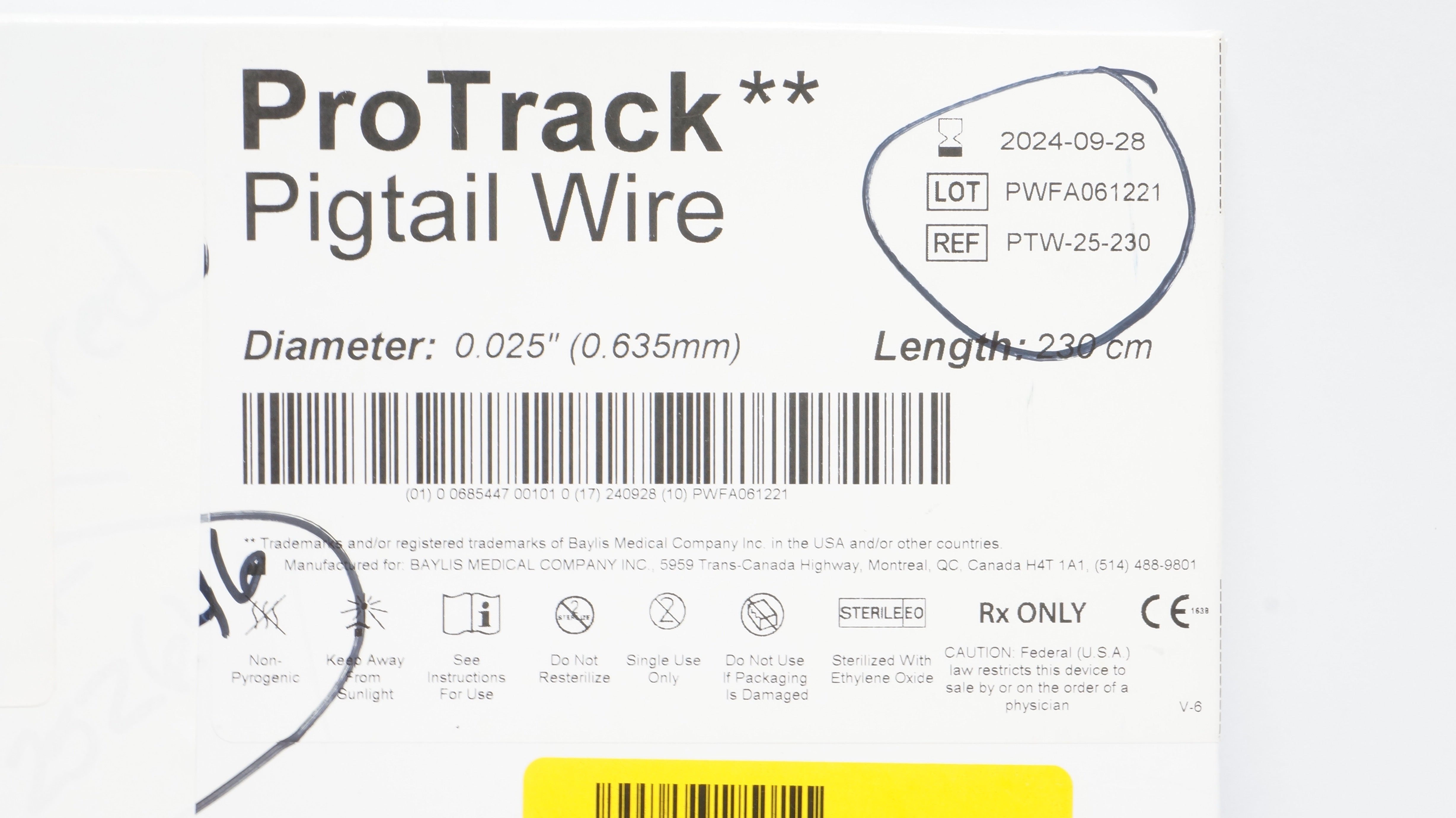 - BAYLIS MEDICAL PTW-25-230 ProTrack Pigtail Wire 0.025inch x 230cm (x)