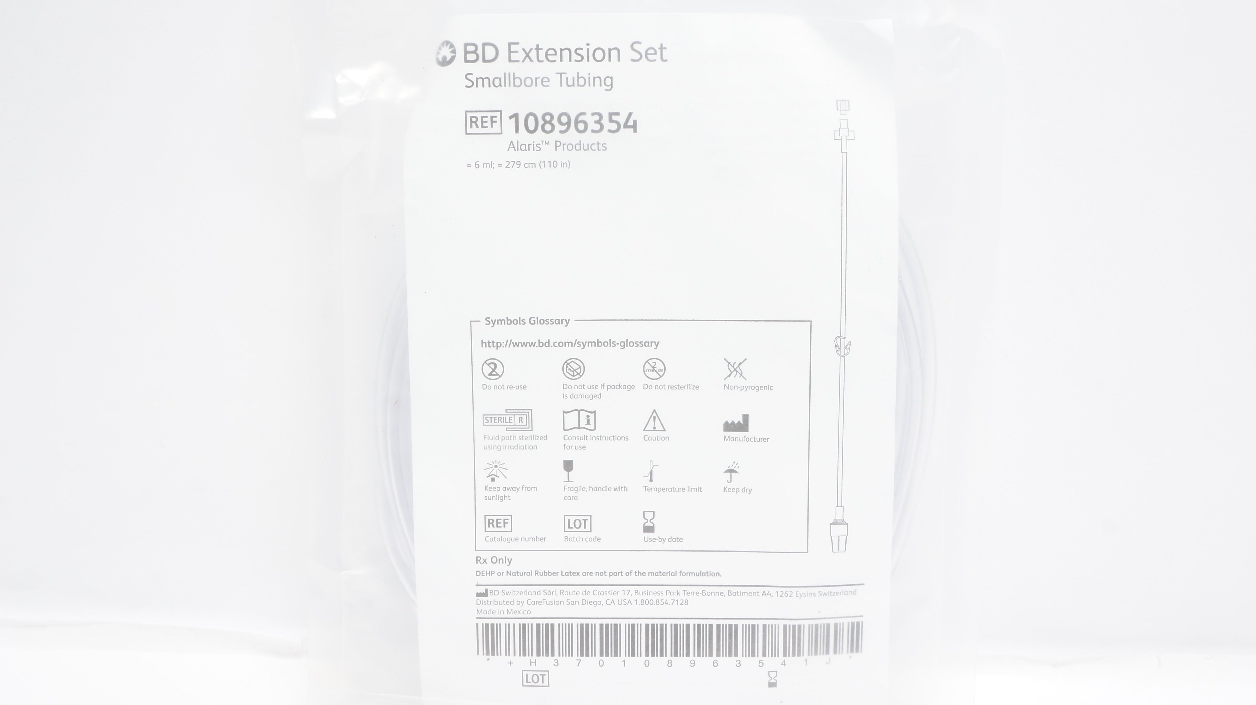 - BD 10896354 Alaris Extension Set Smallbore Tubing 6ml x 110inch