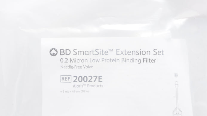 - BD 20027E SmartSite Extension Set Low Protein Binding Filter 5ml x 18inch (x)