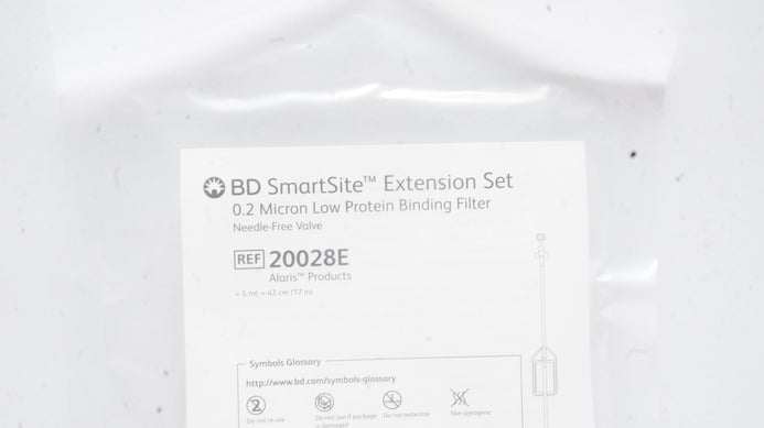 - BD 20028E Alaris SmartSite Extension Set 0.2 Micron Binding Filter 5ml x 17inch