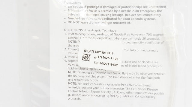 - BD 20059E SmartSite Extension Set Ndle-Free Valve 1ml x 7.5inch
