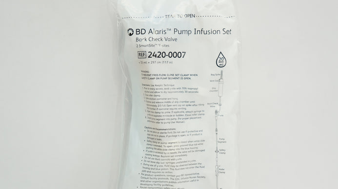 - BD 2420-0007 Alaris Pump Infusion Set Back Check Valve 117inchx25ml 20Drop/ml(x)