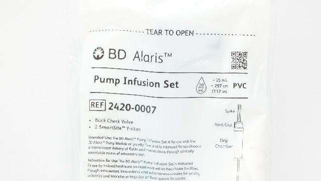 - BD 2420-0007 Pump Infusion Set Back Check Valve 117inch x 25ml 20Drops/mL