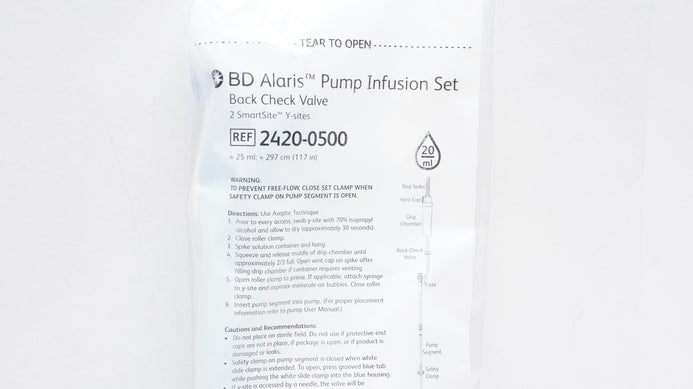- BD 2420-0500 Alaris Pump Infusion Set Back Check Valve 25ml x 117inch 20Drops/ml