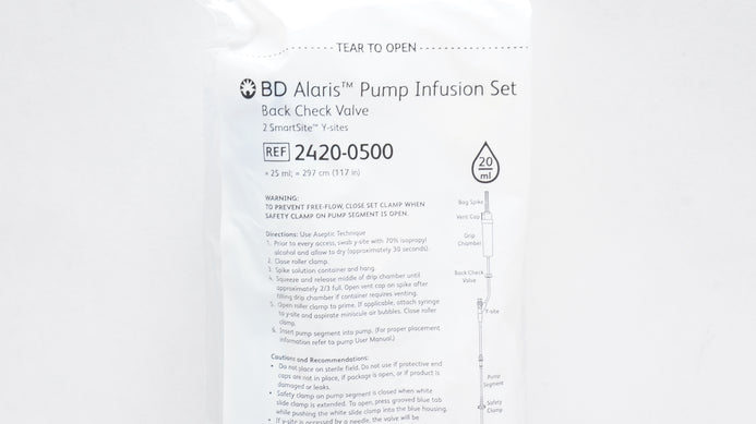 - BD 2420-0500 Alaris Pump Infusion Set Back Check Valve 25ml x 117inch 20Drops/ml