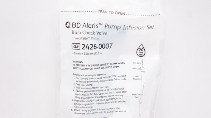 - BD 2426-0007 Alaris Pump Infusion Set Back Check Valve 20Drops/ml 126inch x 26ml