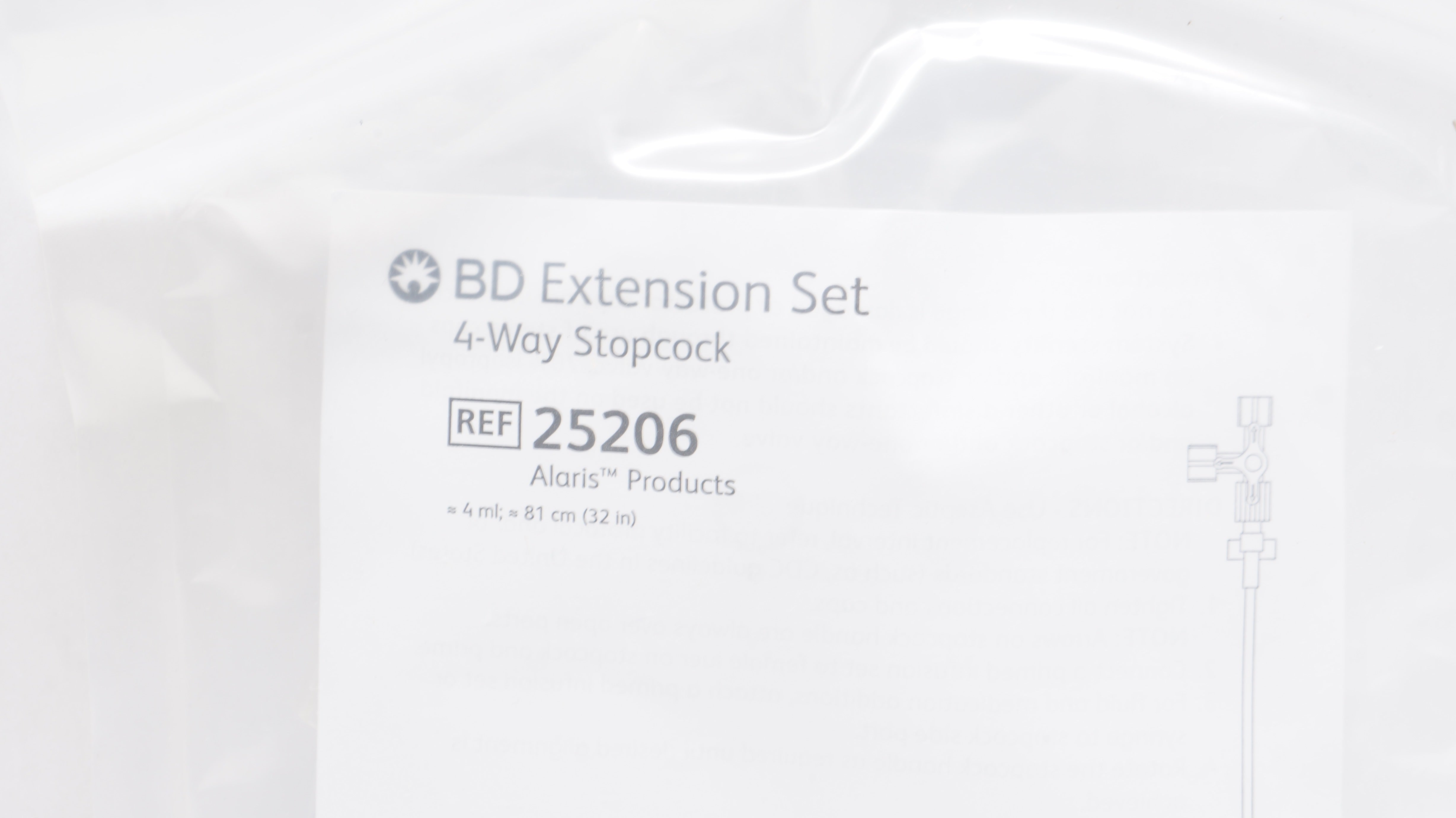 - BD 25206 Alaris Extension Set 4-Way Stopcock 4mL x 32inch